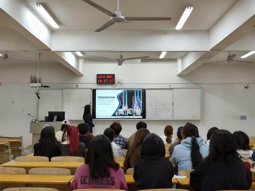 在“四史”学习环节,团支书们条理清晰地阐述了党史、新中国史、改革开放史、社会主义发展史的定义,深入剖析了它们之间的内在联系。通过列举历史事件、讲述发展历程,引导同学们从宏观角度把握历史脉络,深刻理解“四史”对于个人认知提升和国家发展的重要意义。在抗美援朝历史讲解部分,团支书们巧妙结合《长津湖》《跨过鸭绿江》等经典影片片段,通过生动还原历史事件和英雄事迹,将同学们带回到那个战火纷飞的年代,许多同学被影片中的情节深深打动,在认真聆听的过程中,不时记录要点,积极思考历史与现实的紧密联系,进一步拓宽了历史视野,增强了历史责任感。