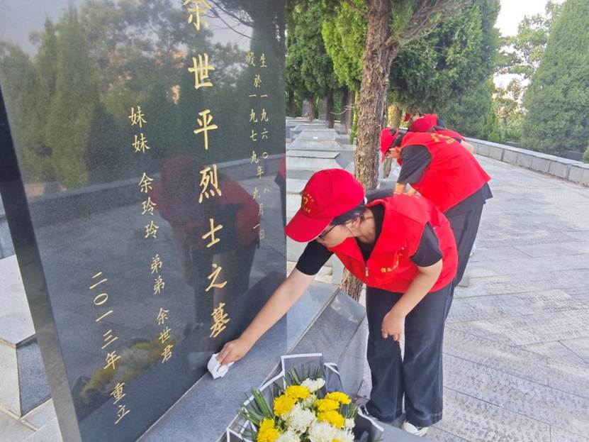 参观结束后,志愿者们分工协作清扫陵园,仔细擦拭纪念碑基座,认真清理地面上的垃圾,用细致的劳动让环境更加整洁肃穆。志愿者们纷纷表示:我们会以革命先烈为榜样,把爱国情、强国志转化为勤学本领、服务社会的实际行动。