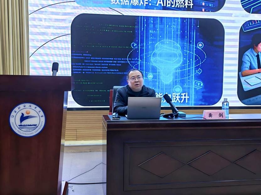 本网讯(信息工程学院)为引导大学生明晰职业发展方向,科学规划职业生涯,3月17日下午,信息工程学院团总支联合就业部在濂溪校区办公楼报告厅举办“AI 赋能未来,规划职业新方向”专题讲座。活动特邀南昌中展数智科技有限公司资深讲师龚剑主讲,该院150余名学生参与。