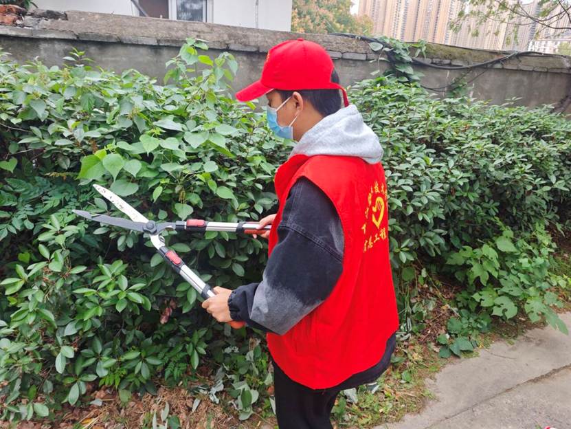 本网讯(信息工程学院)10月21日14时30分,信息工程学院在九江市濂溪区十里街道南山社区轻机小区开展“修剪绿植清楼道,扮靓家园暖人心”主题志愿服务活动,该院青年志愿者协会志愿者积极参与。