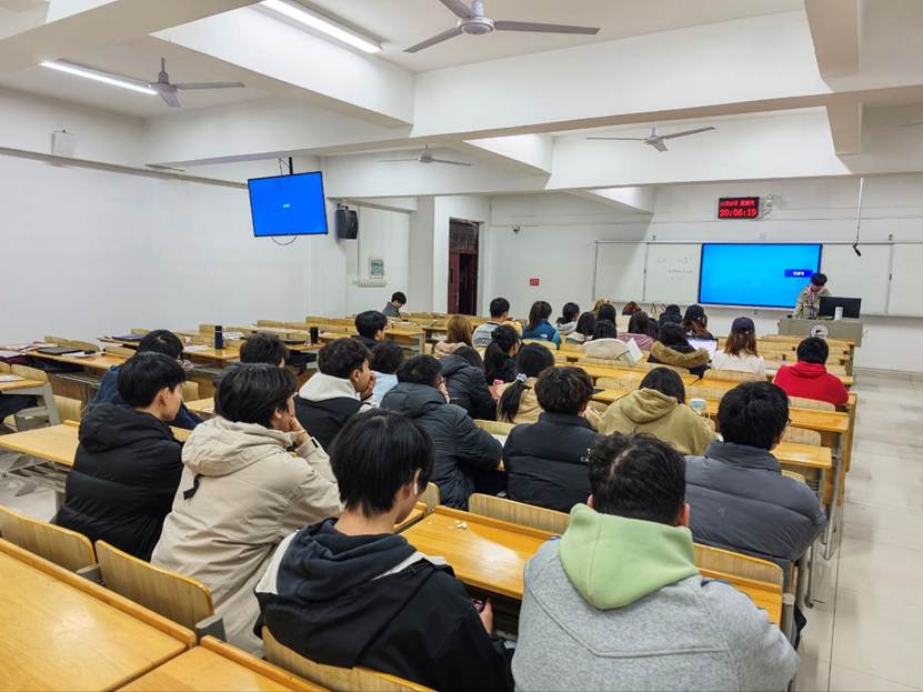 本网讯(信息工程学院)11月23日19时30分,信息工程学院“经纬精英”反诈宣传小组在濂溪校区科创楼各班晚自习教室开展“反诈‘三远离’”主题反诈宣讲活动,该院25级学生积极参加。