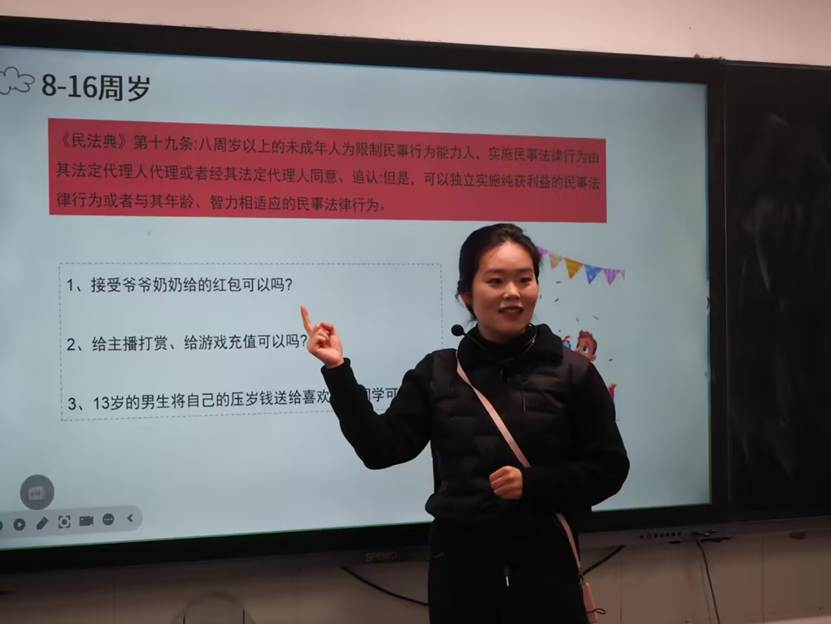 活动中,何奕用通俗易懂的语言为孩子们开启了一场生动的法治教育启蒙课堂,她以趣味故事引述法律概念,让孩子们初步感知法律的边界与意义,帮助孩子们明晰生活中常见的法律法规知识,引导大家树牢法治意识与自我防范意识。